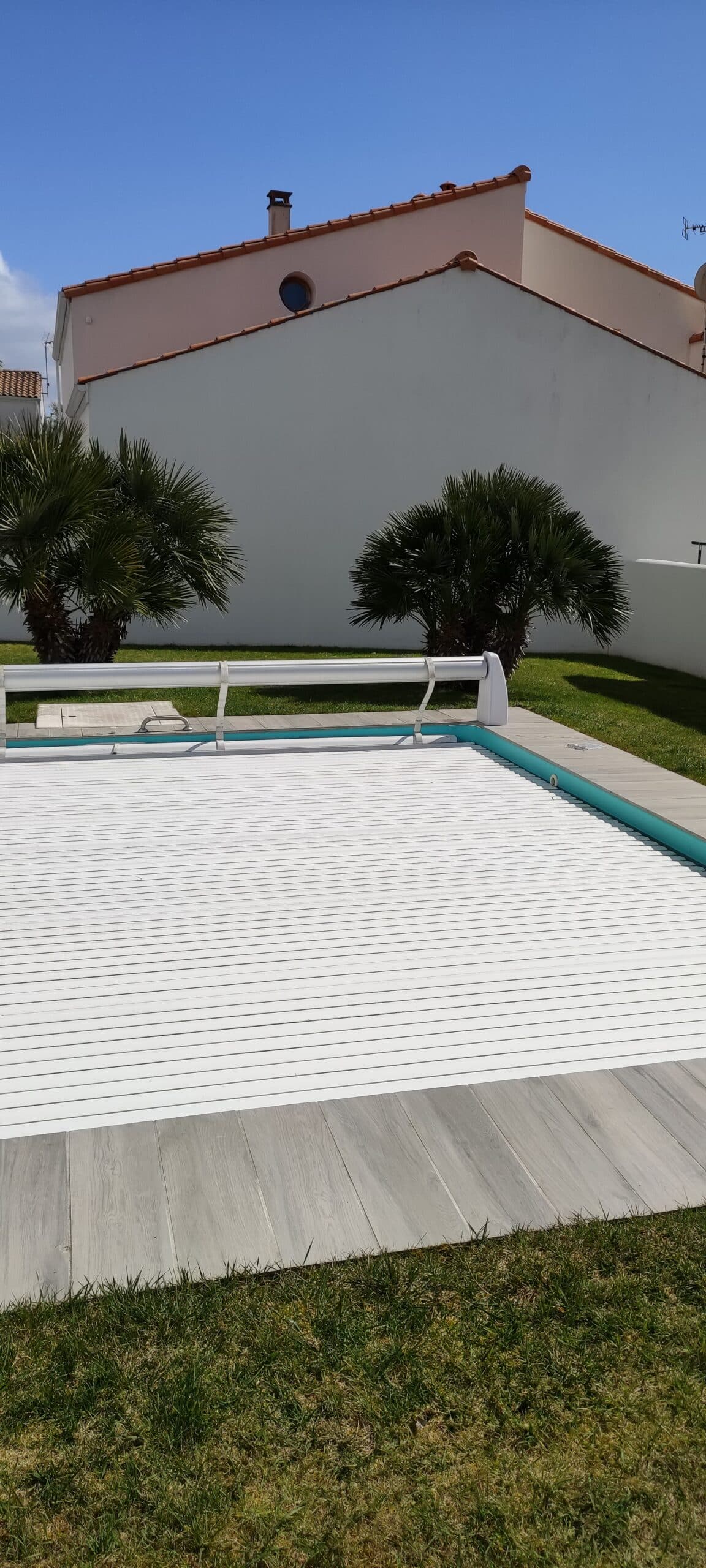 Nos couvertures à lames rigides PVC permettent de garder la chaleur de l’eau la nuit et limitent l’évaporation.